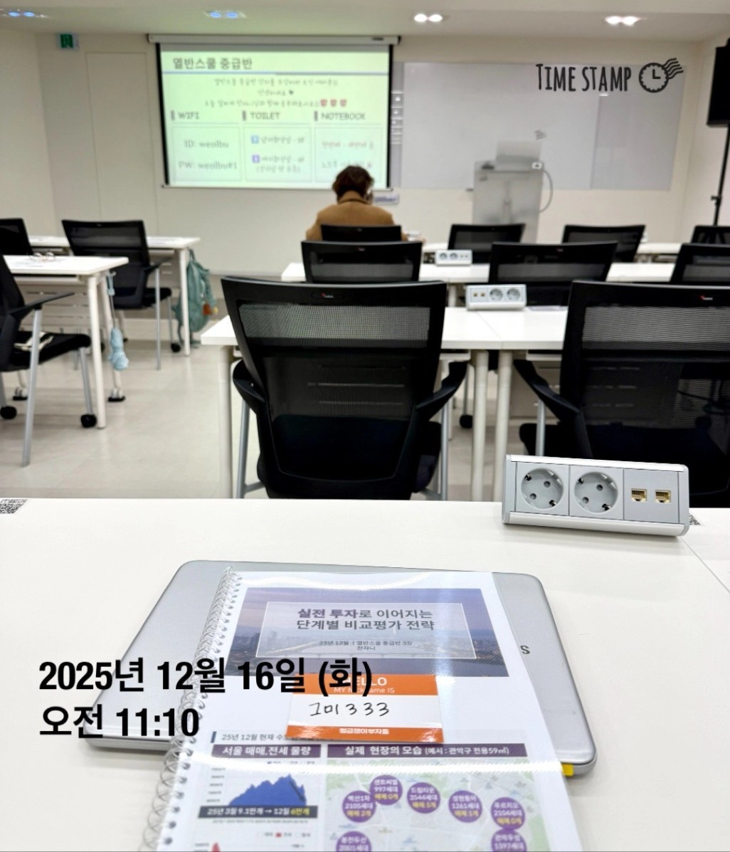 강의실 도착해서 명찰과 수업자료를 받고 미리 한번 훑어보고 여유있게 준비했습니다.