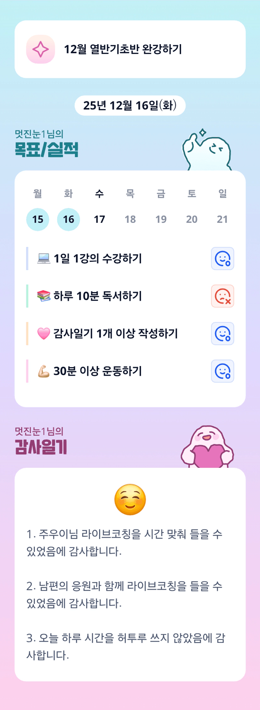 멋진눈님 라코 함께하셨군요ㅎㅎ 목실감 화이팅🧡