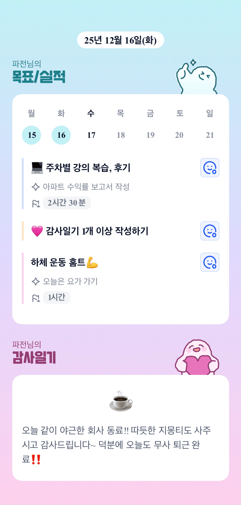 아픈 거 거의 회복되셨나요?^^ 회사 동료분이 따뜻한 자몽티 사주시고~ 마음 따뜻하네요♡