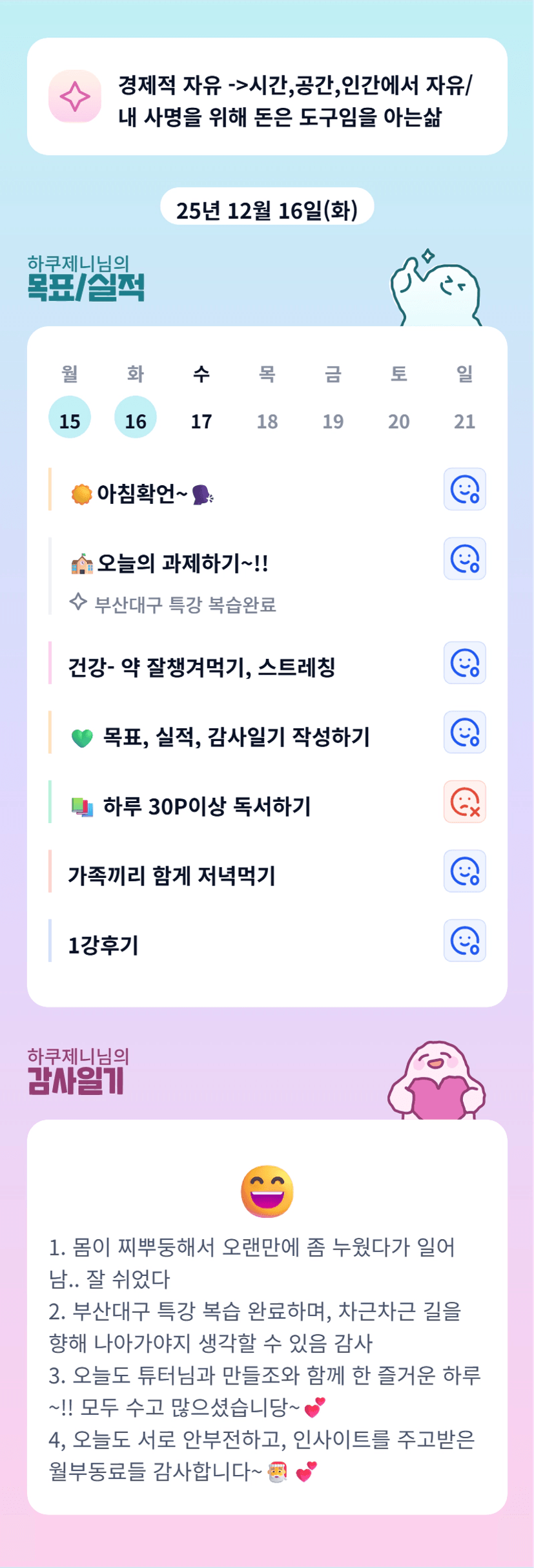 제니님 오늘도 건강하고 활기차게 보내세요 화이팅입니다