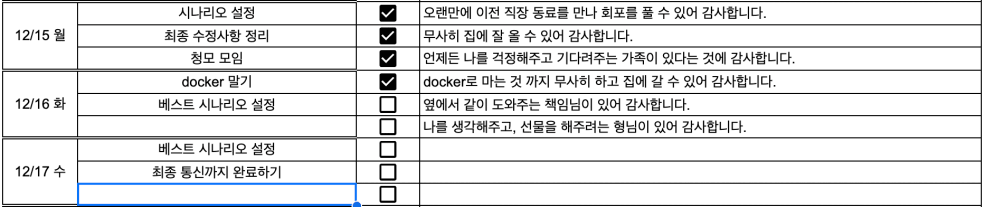 | 내가 한 일 | 항목 | 내가 한 일 | 항목 |