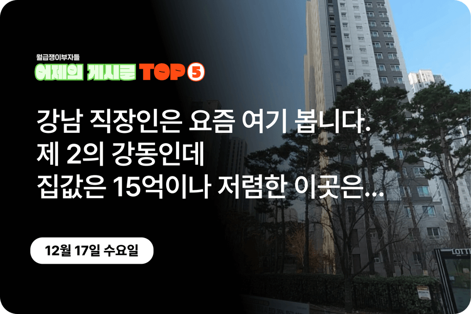 가장 반응이 좋았던 인기글만 담아 ‘어제의 게시글’ TOP5를 소개합니다.