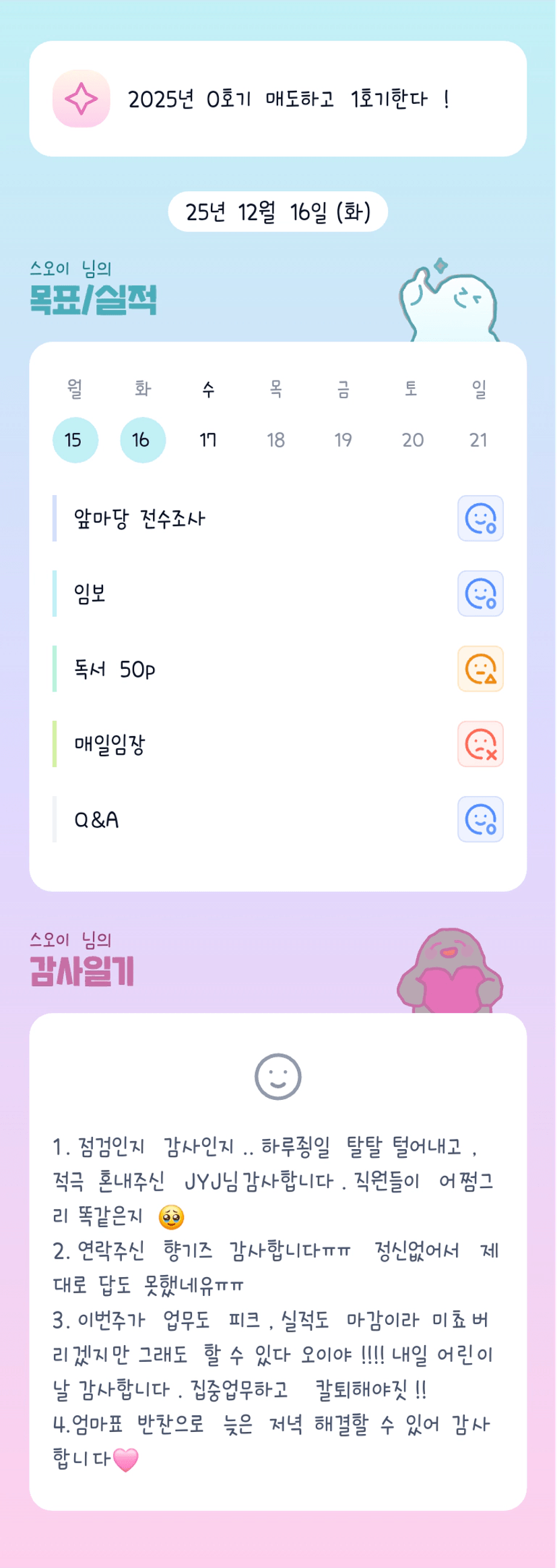 오이님~~ 오랜만요!! 항상 응원하고 있는 거 아시죵? ㅎㅎ