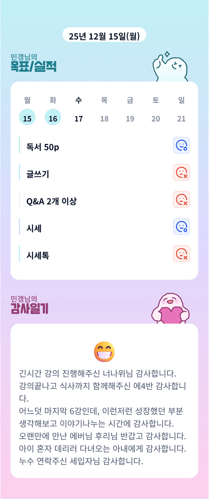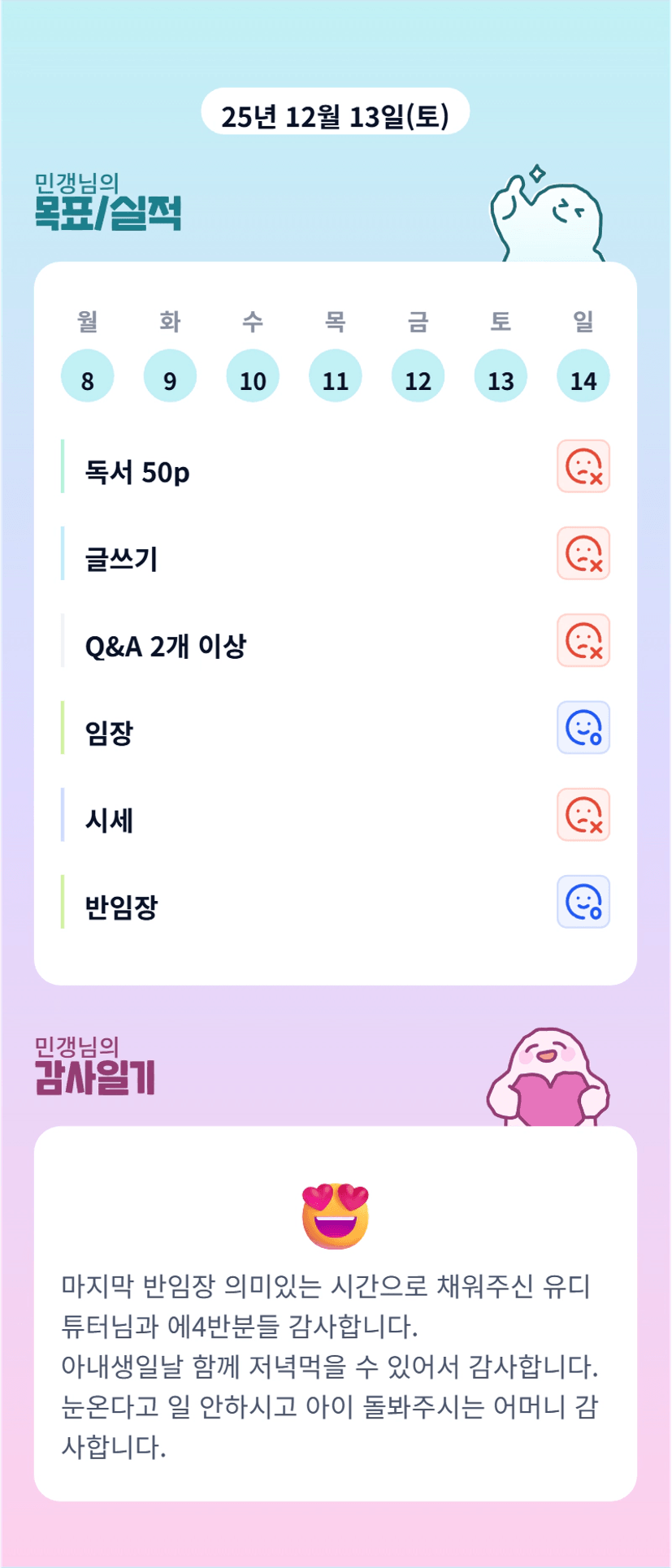 아내분생일 챙겨서 다행 ㅎㅎ 좀만 힘내요!!!! 갱튜터님 빠팅🔥🔥🔥
