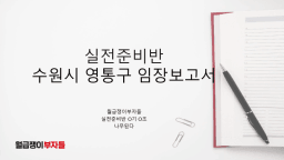 나무된다님 안녕하세요 :) 임장 후에 임장보고서 작성을 계획하고 계신것 같습니다. 말씀하신대로 임장보고서를 작성할 때는 '구'단위로 작성하게 됩니다. 지역을 전체적으로 파악해야 투자하고자 하는 단지의 위상을 알 수 있기 때문에 그 안에서 단지를 뽑아서 보기보다는 300세대 이상, 20평대~30평대 아파트를 모두 분석하게됩니다. 시간과 노력이 많이 들어가는 일이지만 이렇게 앞마당을 몇개 만들어두시면 비교평가가 되고, 확신 있는 매수 하시게 될거예요! 혼자서는 임장보고서 작성이 쉽지 않습니다. 실전준비반 수강하시면 템플릿부터 작성 요령까지 전부 알려주셔서 강의 수강하시기를 추천드립니다. 그럼 화이팅입니다!