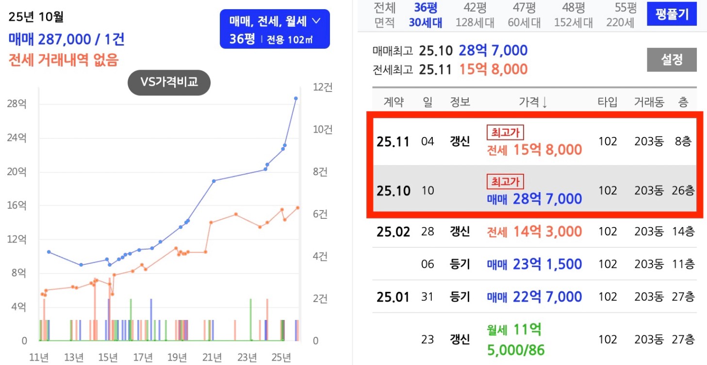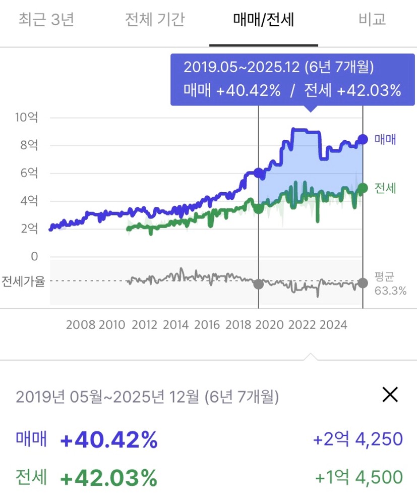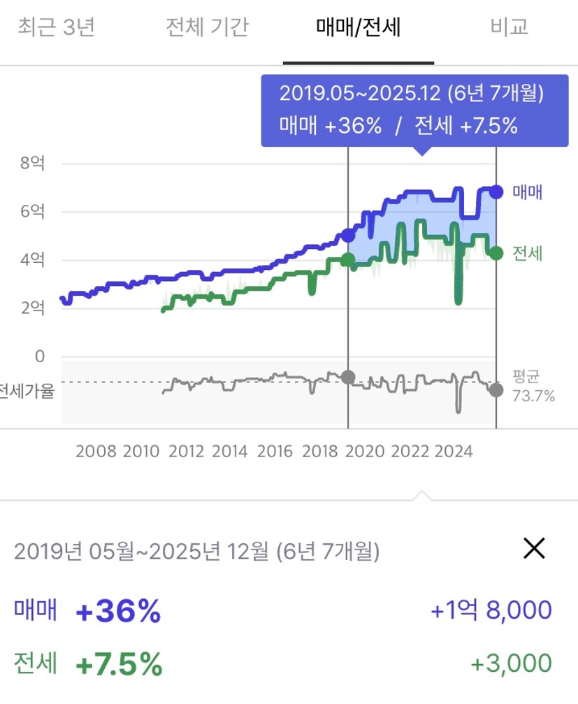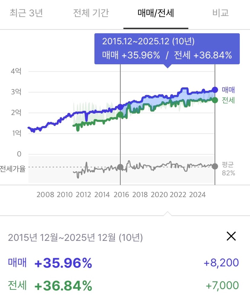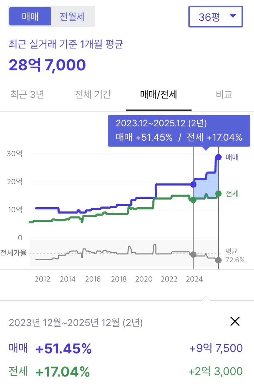 매매와 전세가 꾸준히 우상향하는 아파트가