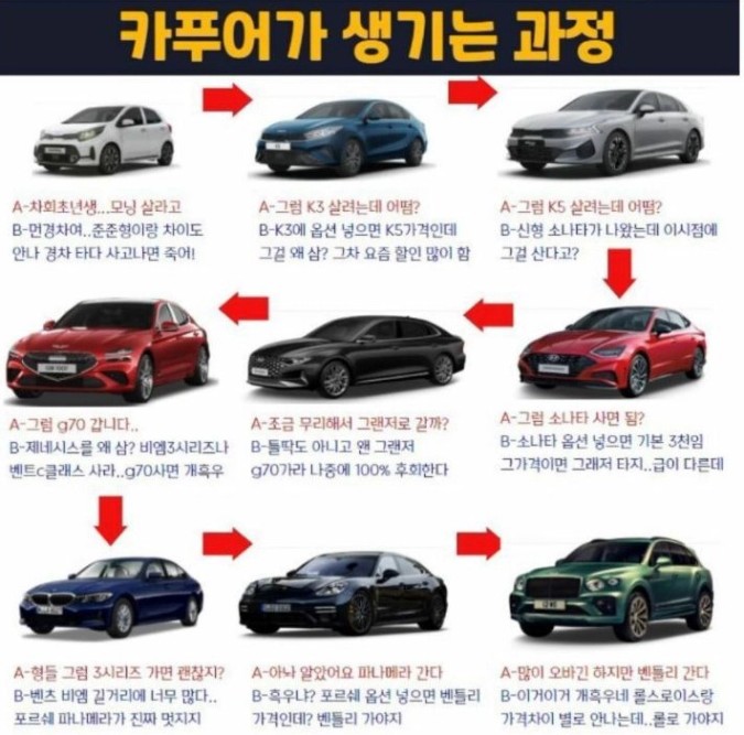 "모닝 사러 가서 ~ 수입차 사고 나온다고~~~"