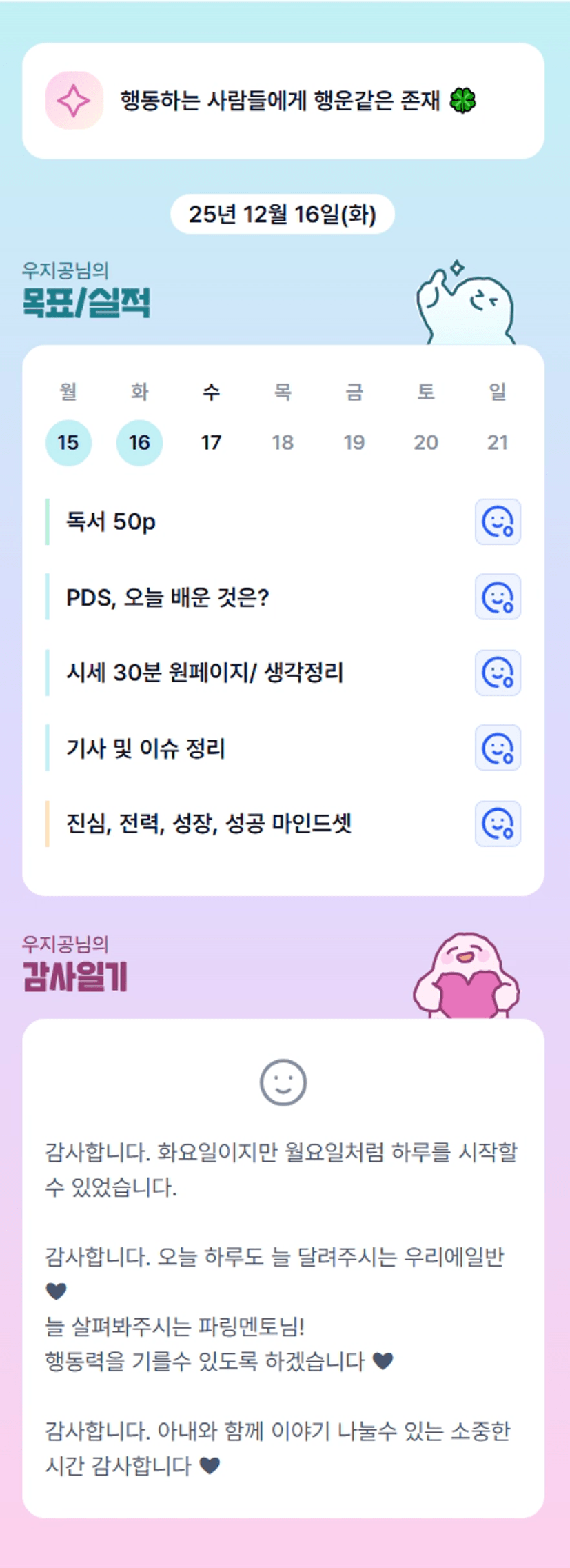 화요일을 월요일처럼 알차게 보내신 지공님~ 오늘 하루도 너무 고생 많으셨습니당~🤗💕