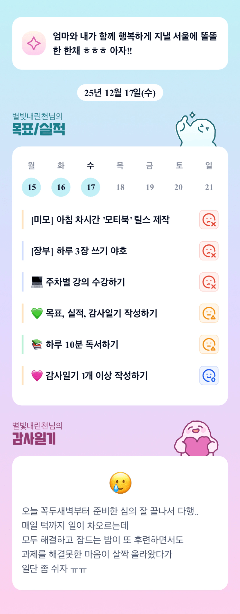 고생하셨어요 별천님 ㅜㅜ 매일이 원씽 그 자첸거 같아요 🥹