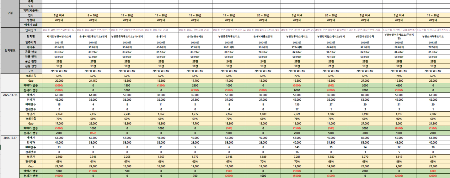 어제 실전 임장 클래스를 부천시 원미구로 다녀와서 앞마당인 부천시 원미구 시세트래킹을 완료해보았습니다.