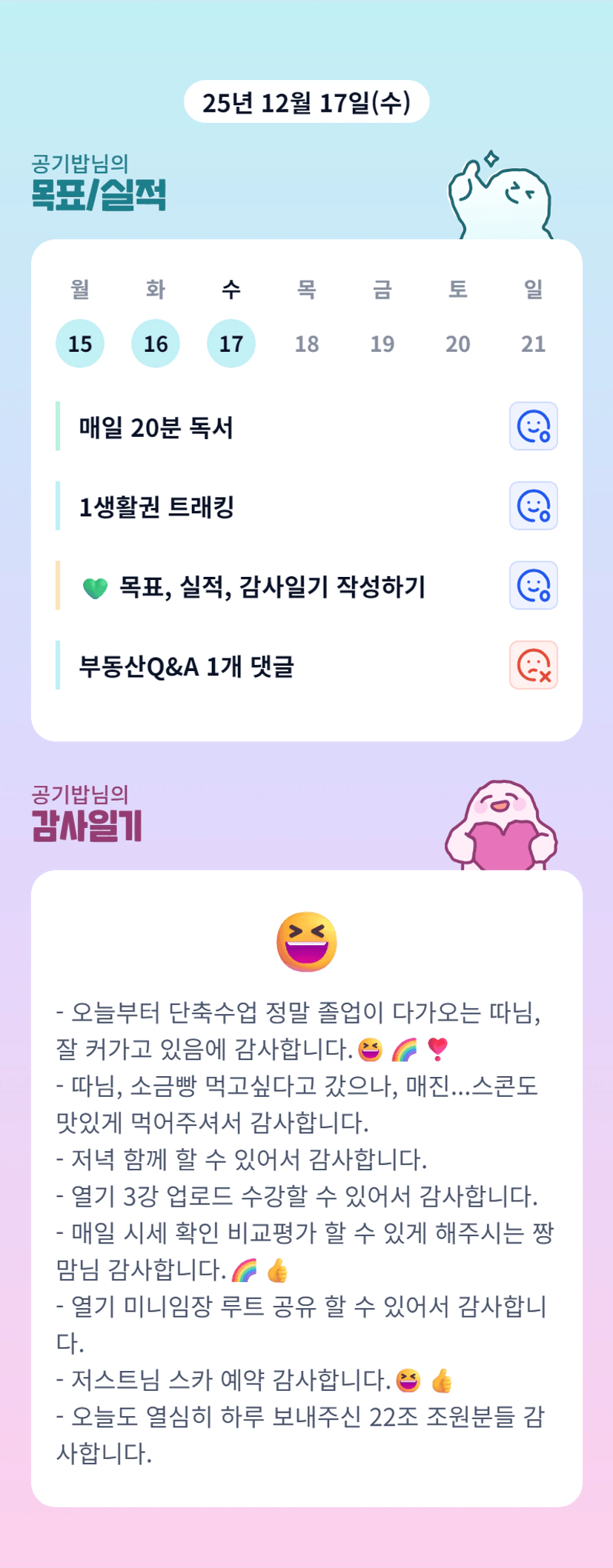 오 오늘도 알찬 하루 보내셨네요~ 고생많으셨습니당! 푹 주무십셔!!^^