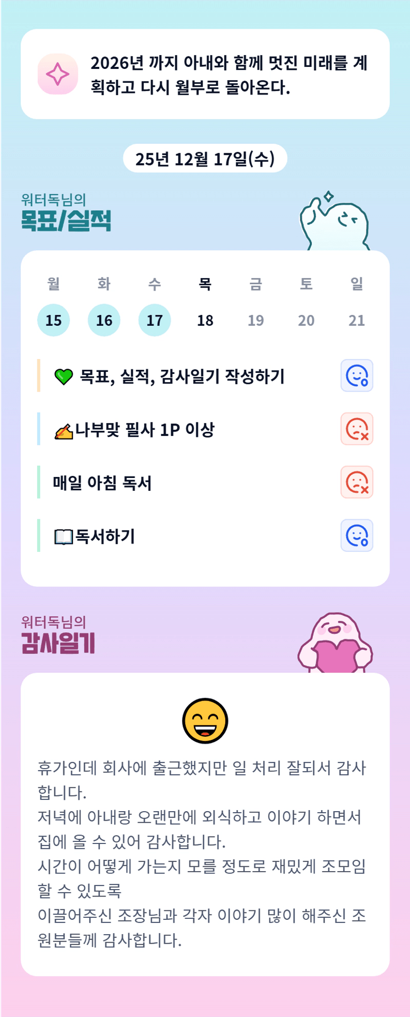 내일 또 잘 할 수 있는 하루가 있다는 말 너무 좋은데요! 워터독님 감사일기 덕분에 저도 기분좋게 하루 마무리 할 수 있을 것 같아요! 감사합니다>.<