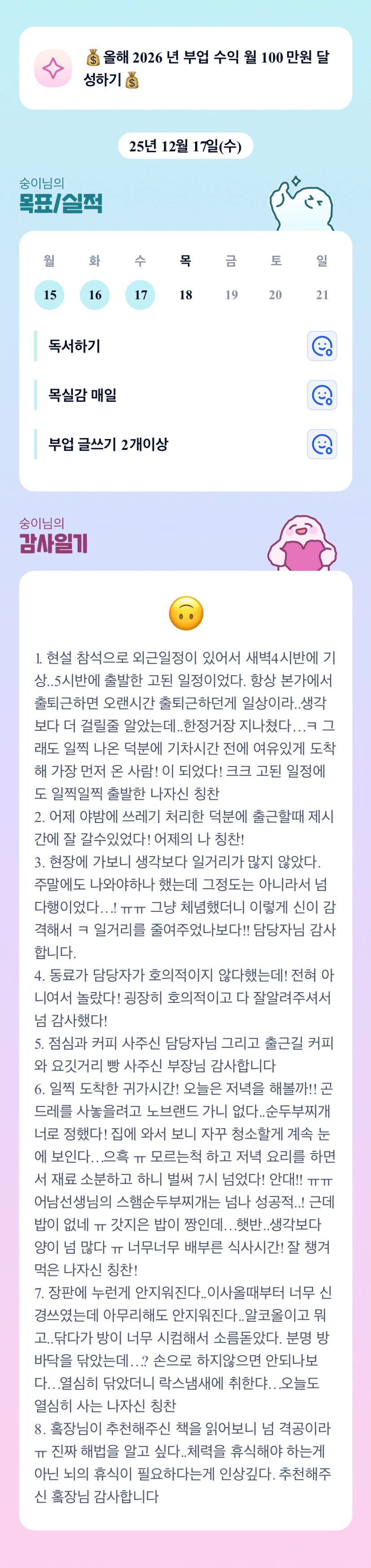 숭이님의 긍정적인 에너지가 거래처 담당에게도 ㅎ 오늘도 멋진 하루 보내세요 화이팅입니다