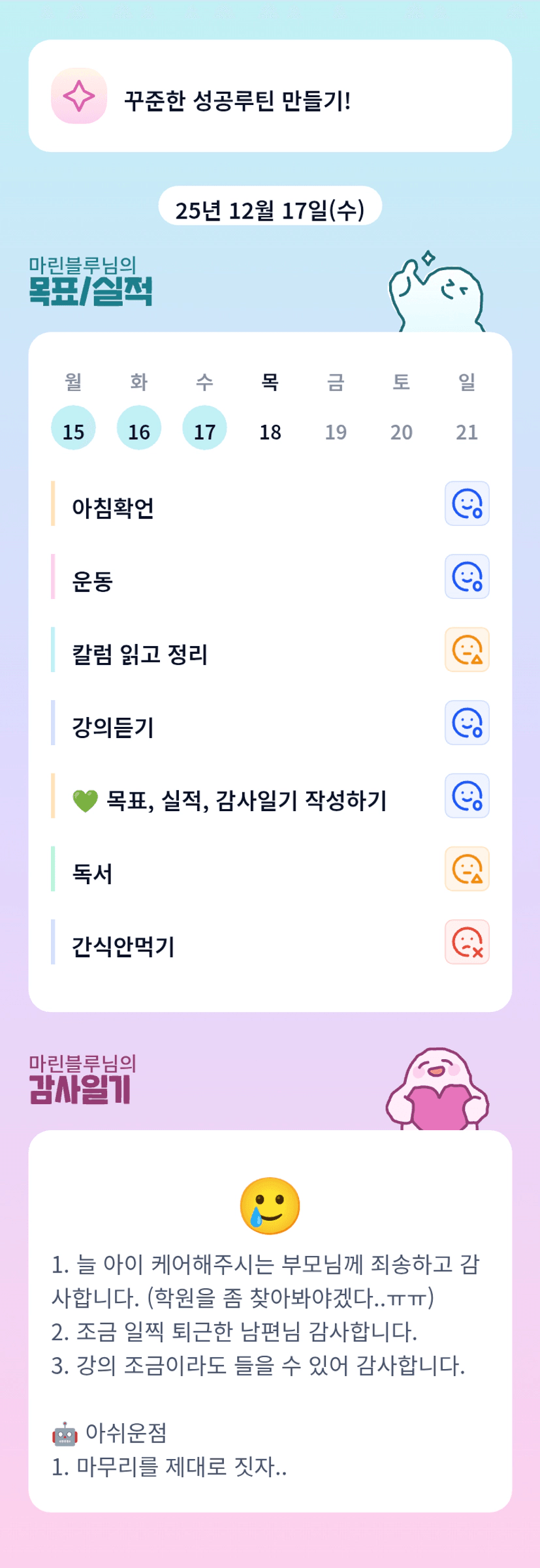 부모님... 아이를 키우는 시간이 늘어나면서 그 모든 것에 감사하는 마음이 더 더 들더라구요. 그치만 나중에 내 딸이 마블님처럼 열심히 하면, 너무 뿌듯하고 행복할 것 같습니다! 오늘도 힘내시고, 가족들과 따듯한 시간도 보내시길! 🤗