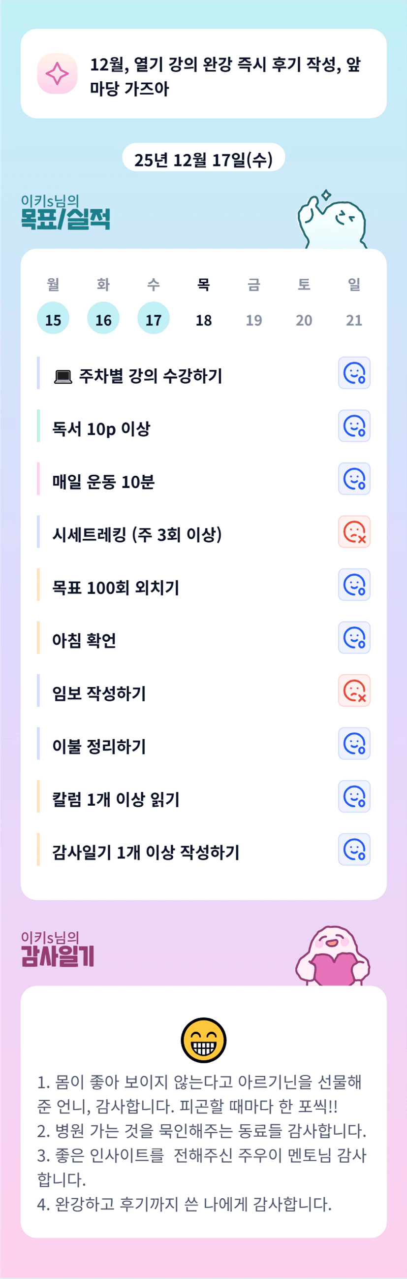 오 벌써 완강이라니! 역시 이키님! 건강도 잘챙기셔요~!