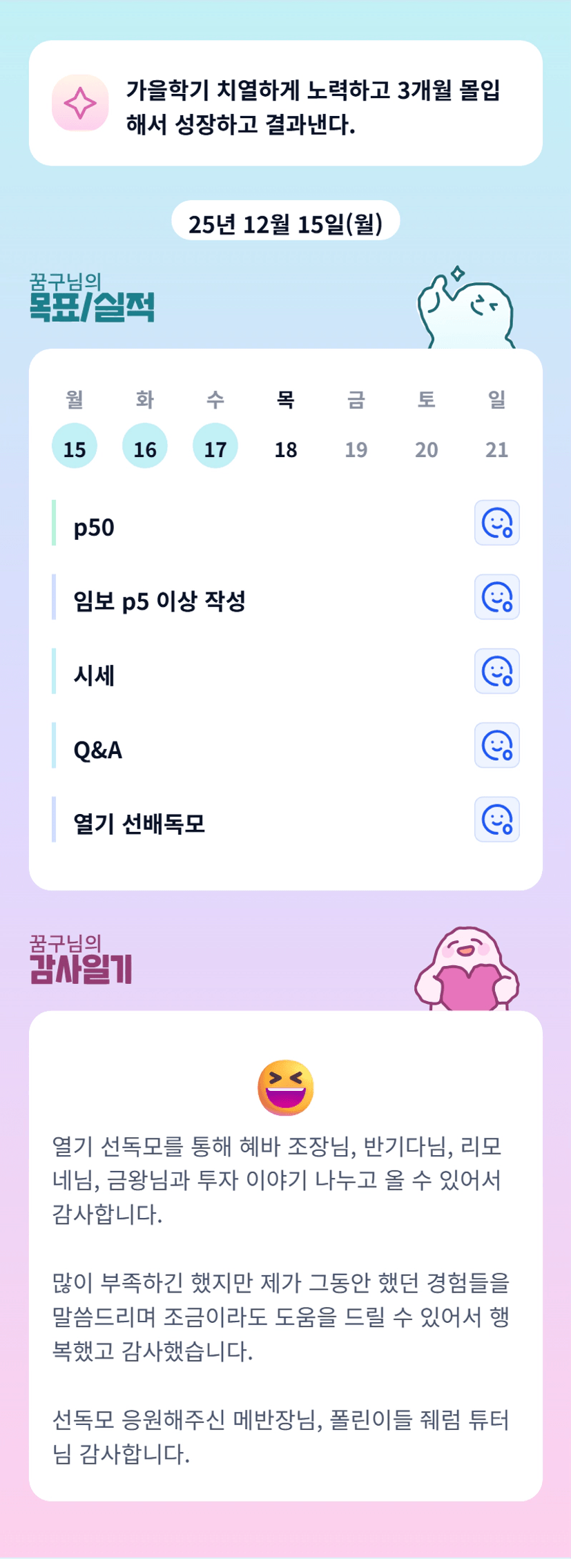 [지기17기 매1성장하니1년후가7ㅣ대되조 꿈구] 함께했더니 한발짝 성장한 조장활동 후기