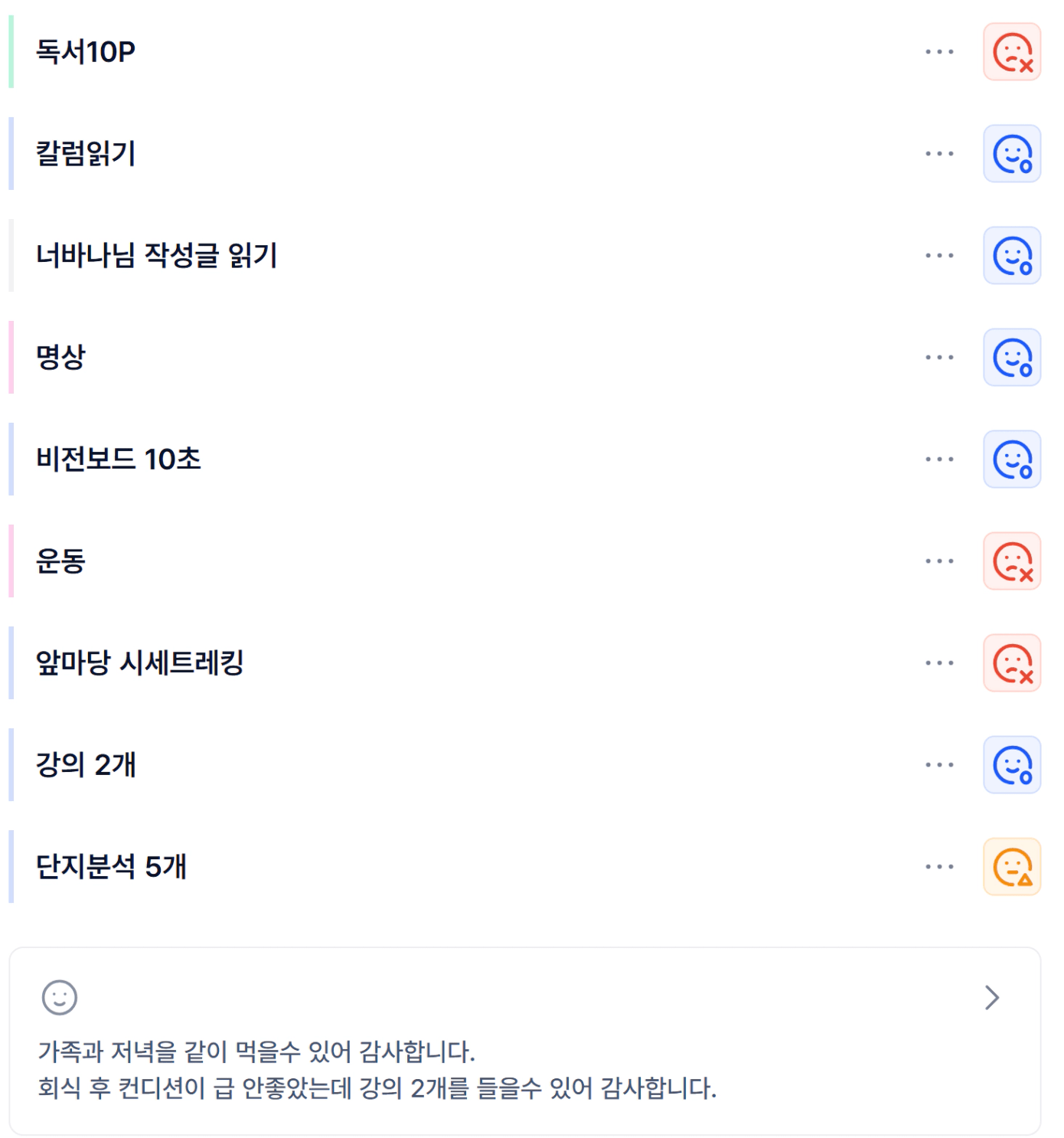 나는 건강한 사람이다.나는 부단히 노력하는 성실한 사람이다.나는 2025년 앞마당 10개를 만든다.나는 2026년 3호기 투자한다.나는 2028년 4호기 투자하고, 순자산 15억 달성한다.나는 2030년 5호기 투자한다.꾸준함은 성공의 최고 덕목이다. 나는 꾸준히해서 2035년 30억 부자가 된다.나 우가행은 해내는 사람이다.나는 한다.나는 해낸다.나는 반드시 된다.