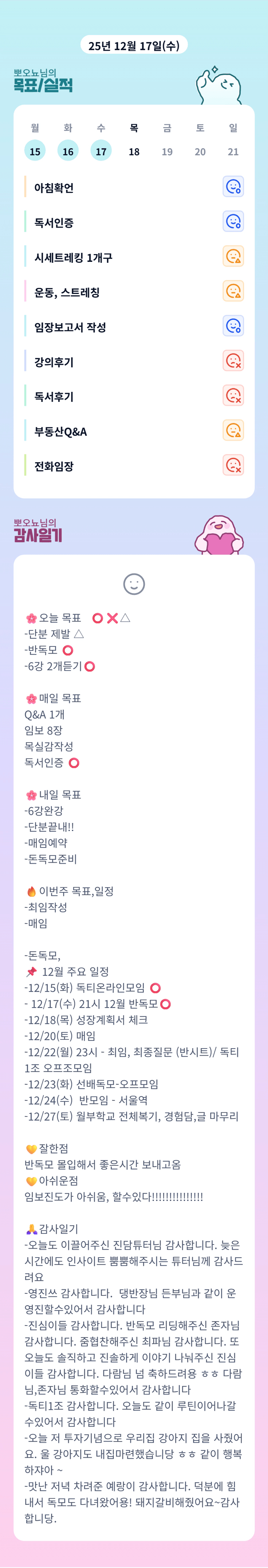 때로는 과제가 버겁고, 때로는 임장에서 두렵기도 했습니다.