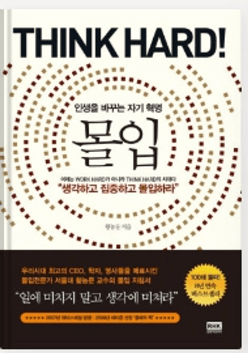 행복은 몰입하려는 노력을 통해 얻을 수 있다. 만약 돈을 버는 것을 목표로 삼았다 하더라도 몰입하여 그 방법을 찾아 일했다면 그 과정에서 행복을 경험 할 수 있다. Think Hard의 패러다임에서는 보장되지 않은 미래의 행복을 위해 현실을 희생하는 것이 아니라 현재를 행복하게 산다. 그 과정에서 일의 성과도 높아지고 자신의 능력도 빠른 속도로 증가한다. 미래의 행복을 담보로 현재를 저당 잡히는 것이 아니라 행복을 누리면서도 그 결과가 보다 확실한 미래의 성공을 보장하는 것이다.