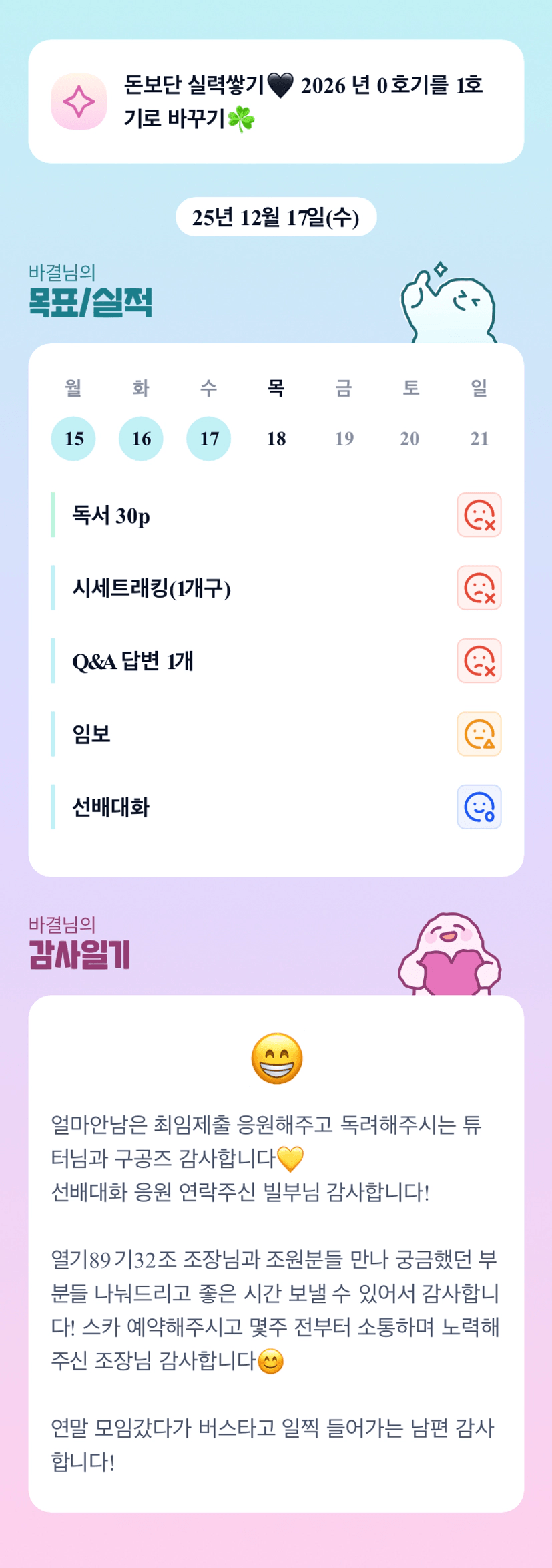 바결님 선배와의 대화 고생 많으셨습니다 ❣️최임 마무리까지 화이팅입니다!