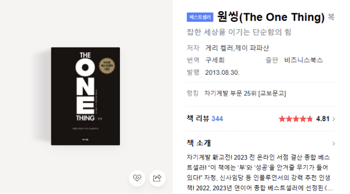 제 인생책 중 하나인 원씽을 재독했습니다.