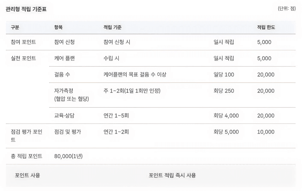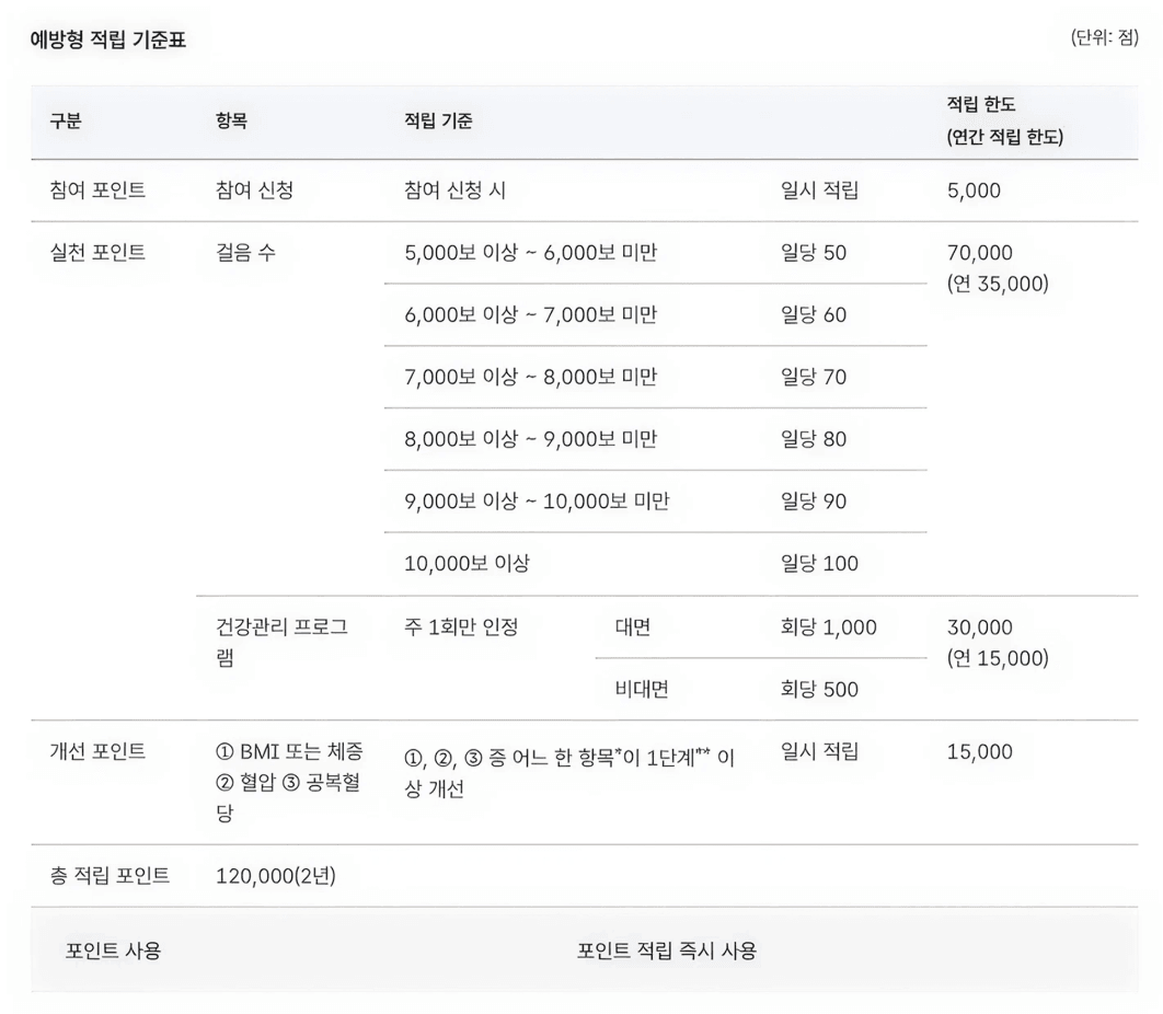 • 건강관리 프로그램 등 나머지 프로그램까지 참여하면 최대 12만 포인트를 적립할 수 있습니다.