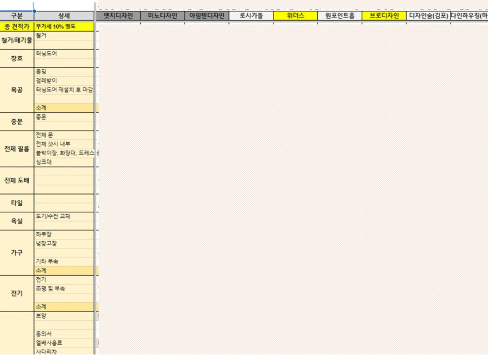저의 경우, 처음에는 인테리어를 하면서 10개 업체 정도 견적을 받다보니 감이 오더라고요.