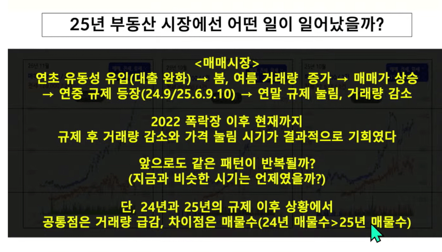 현재도 지난 23, 24년 규제 이후에 거래량이 감소했던 것처럼 거래량이 감소하고 있지만