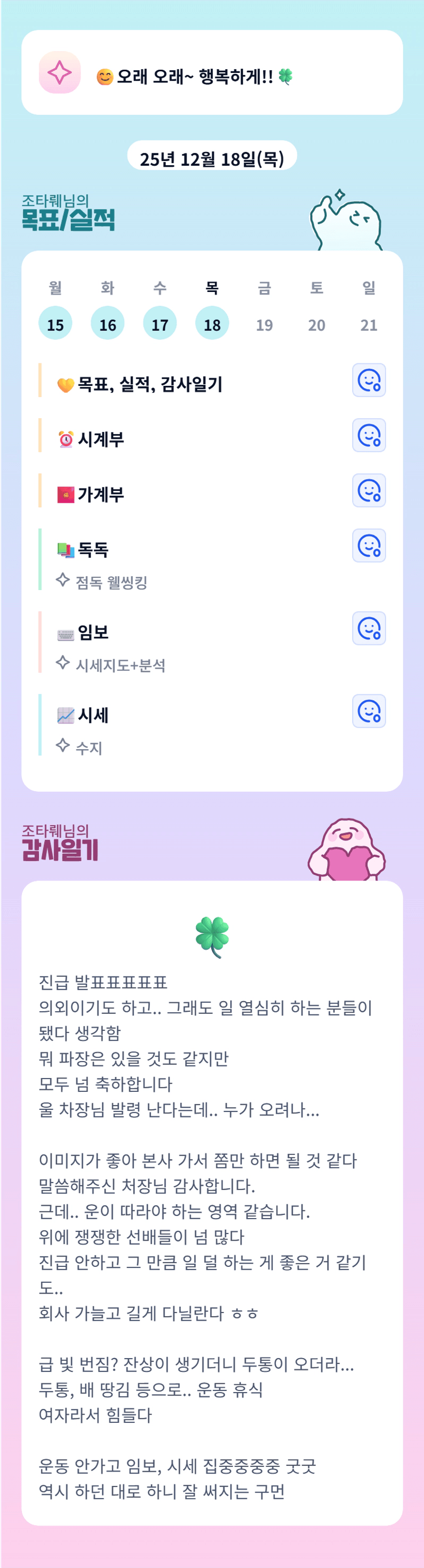 직장~가늘고 길게~~종잣돈만들어 투자해요~♡ 건강 잘챙기면서해요~^^
