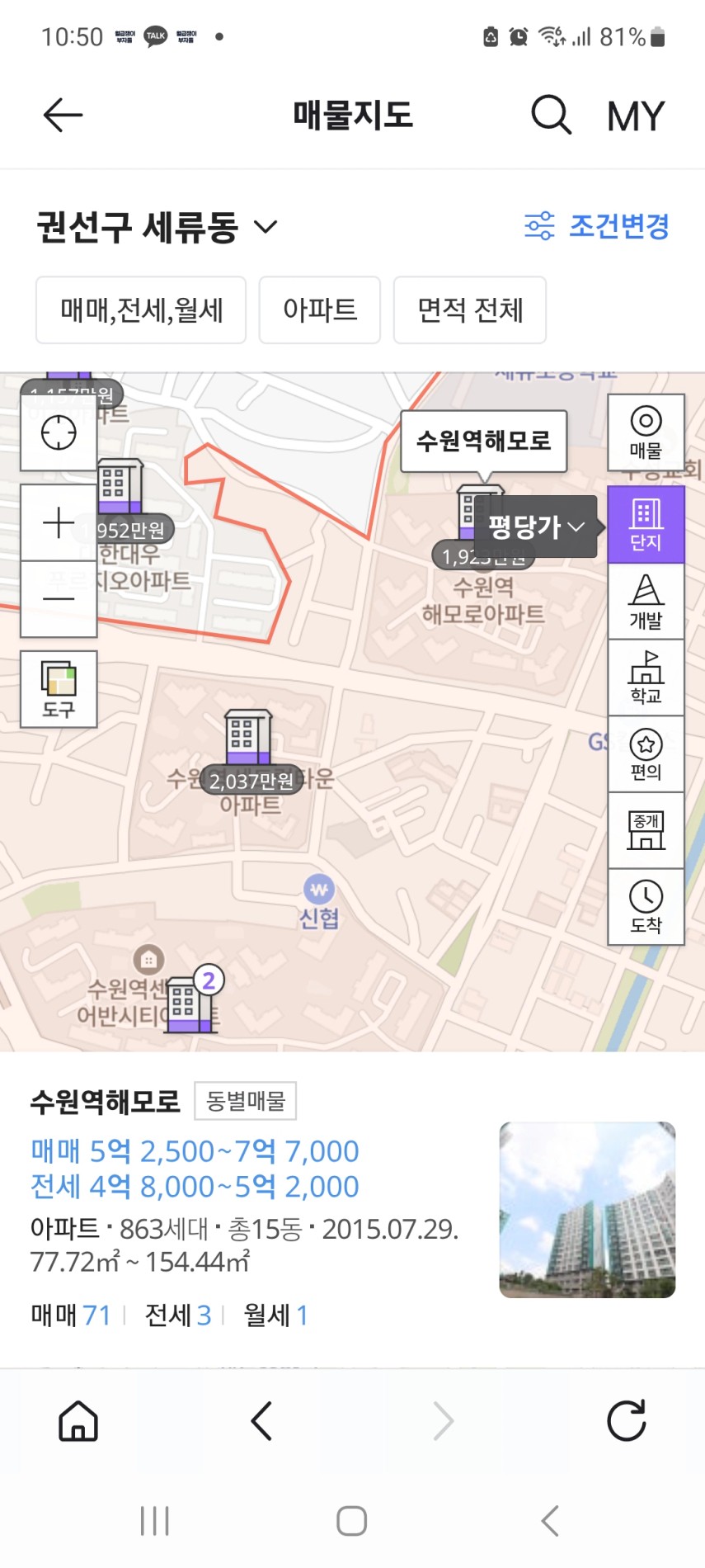 1호선, 수인분당선 수원역 더블역세권의 힘이 연식보다 세다!! 세류동 이제 막 실거주접근해 상승초반부~