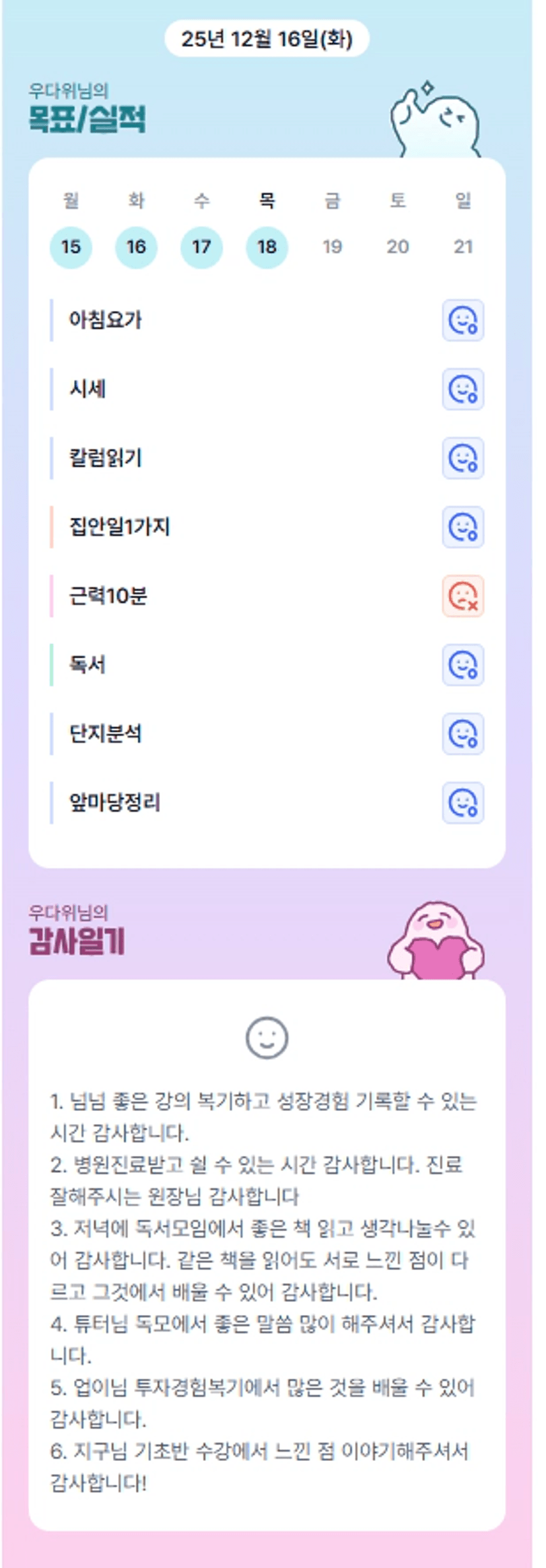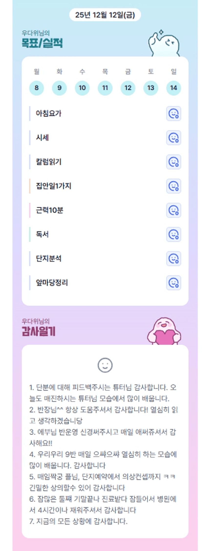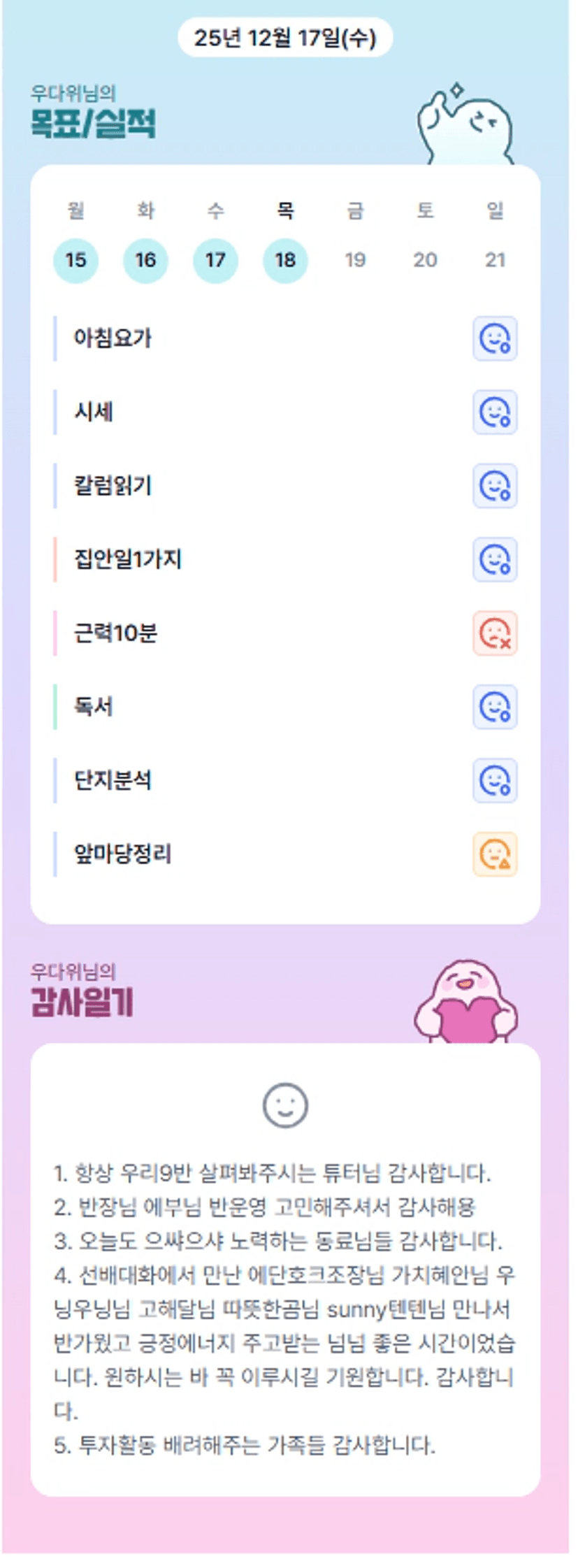 이번 일주일도 가득가득 알차게 보내셨군요ㅎㅎ 고생하셨습니다 우부님!!