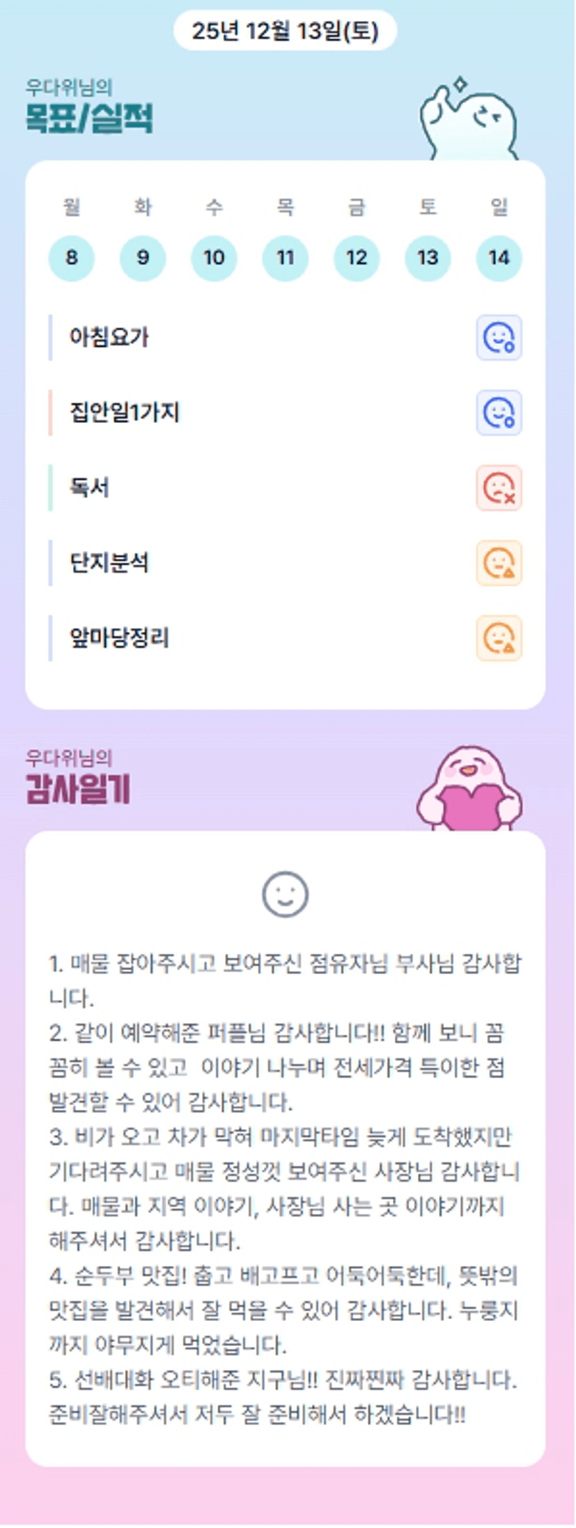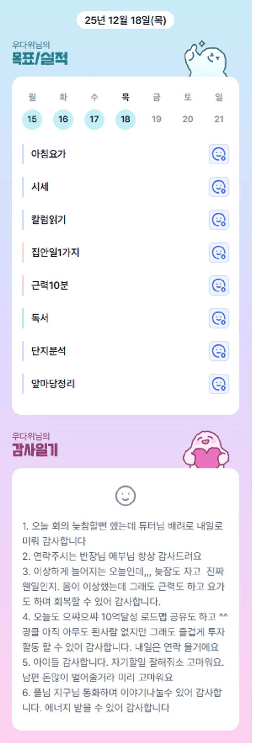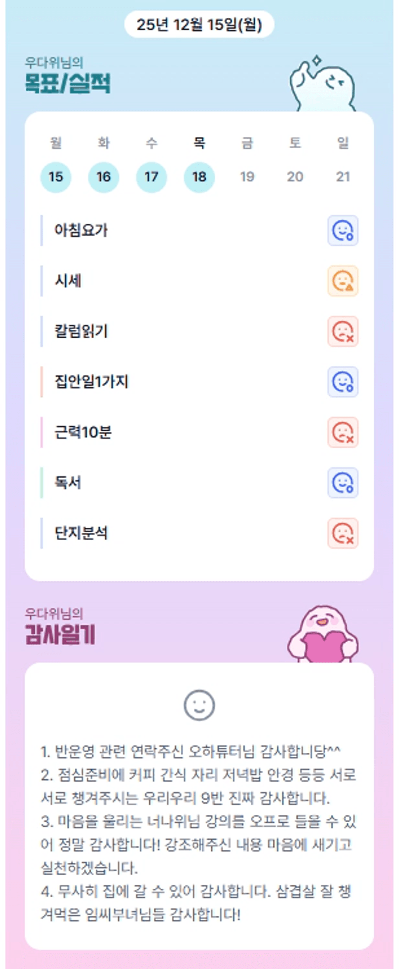이번 일주일도 가득가득 알차게 보내셨군요ㅎㅎ 고생하셨습니다 우부님!!
