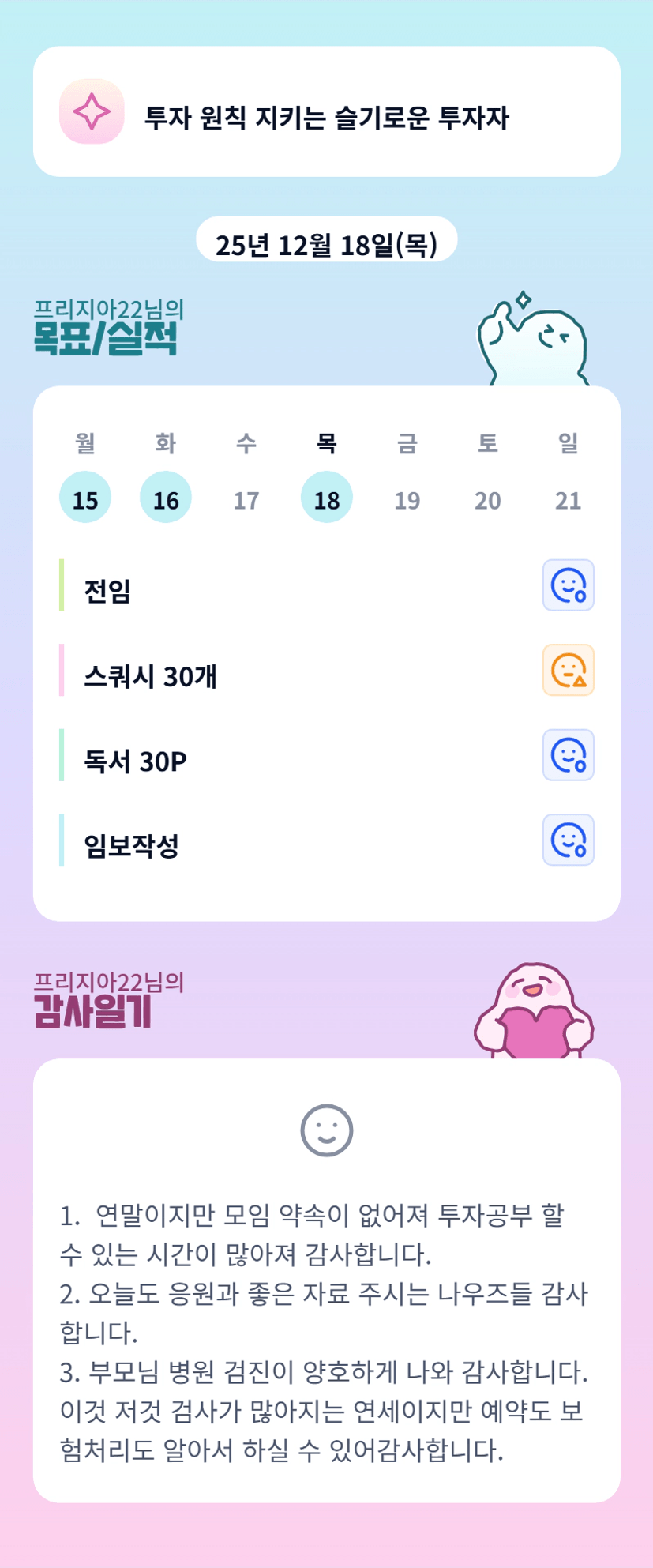 부모님 건강하셔서 다행입니다. 연말에도 투자 공부 몰입하는 멋진 여자!!