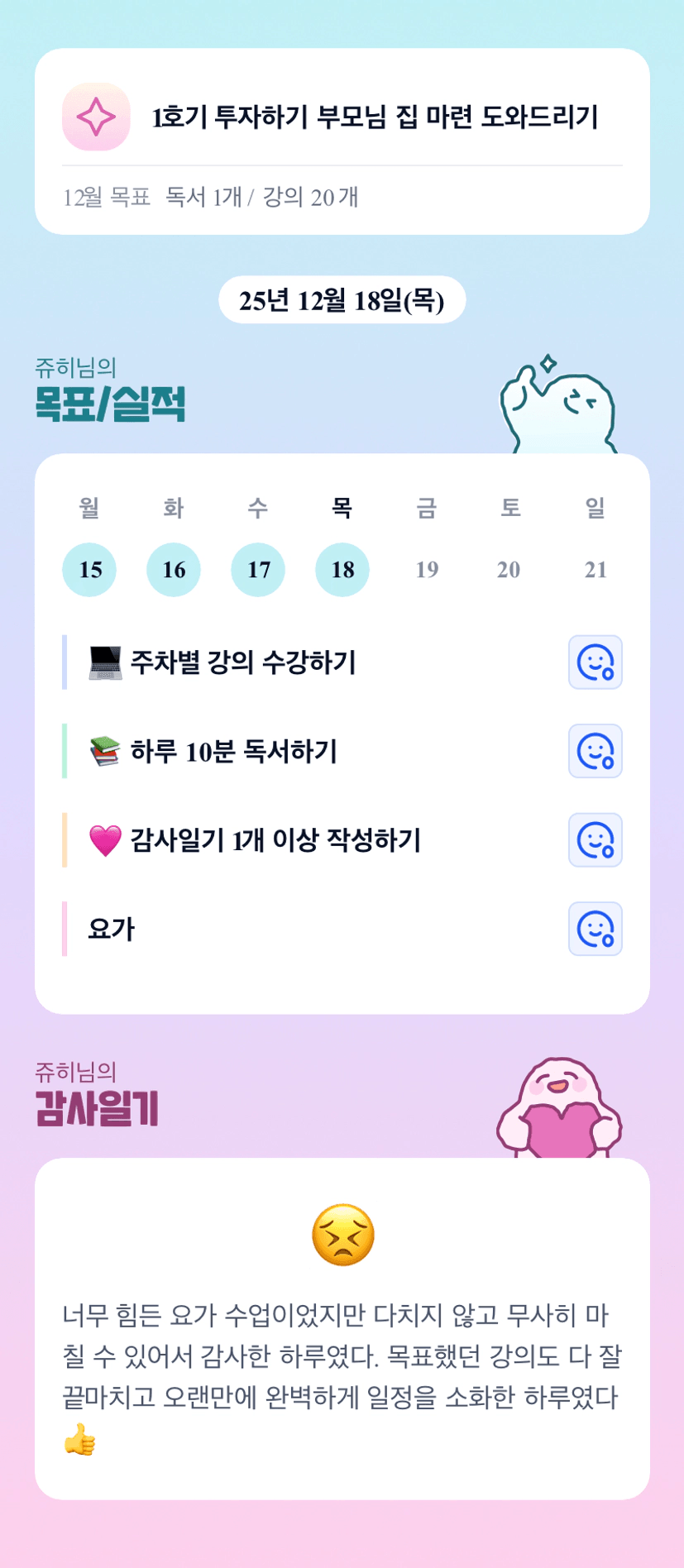 강의에 요가까지!! 알찬 하루 보낸 쥬히님 내일도 파이팅~!