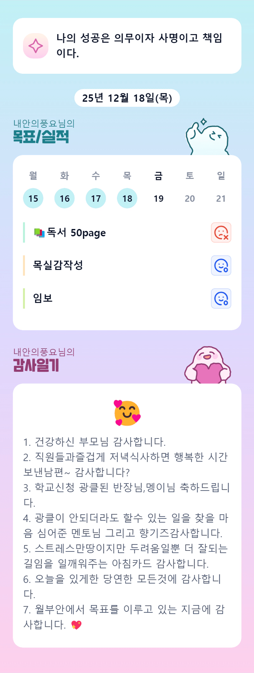 아침카드 너무 좋아요 매일 공유해주셔서 감사해요 풍요님🩷 풍요님은 에이스반간다!!!