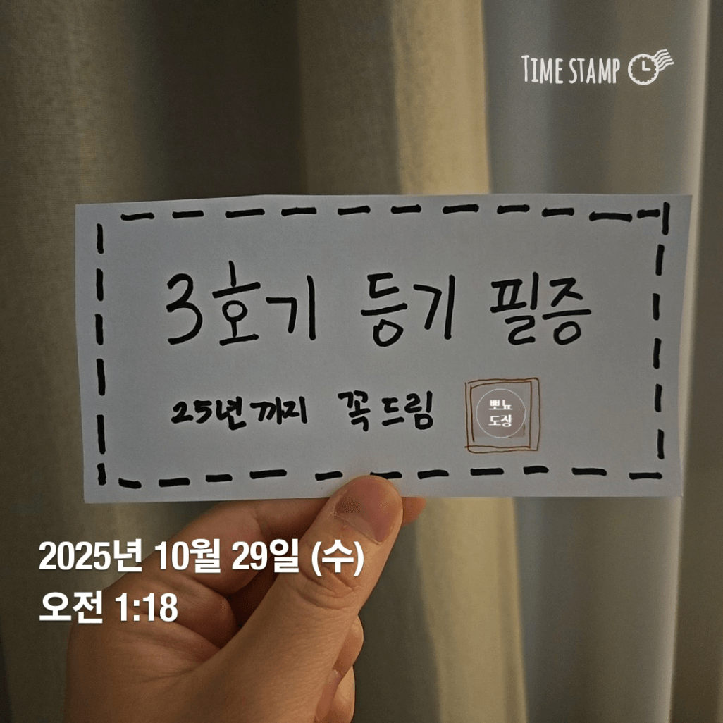 3호기 등기증을 쿠폰처럼 귀엽게 만들어 건넸습니다.