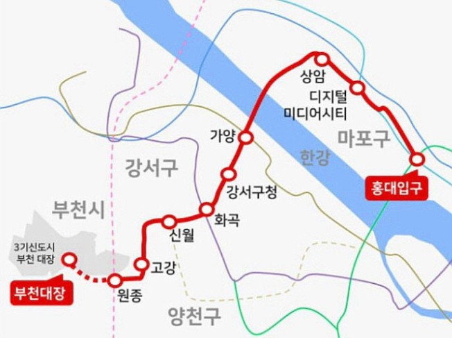 마곡(LG) - 계양(테크노밸리) - 대장(SK, 대한항공)으로 이어지며