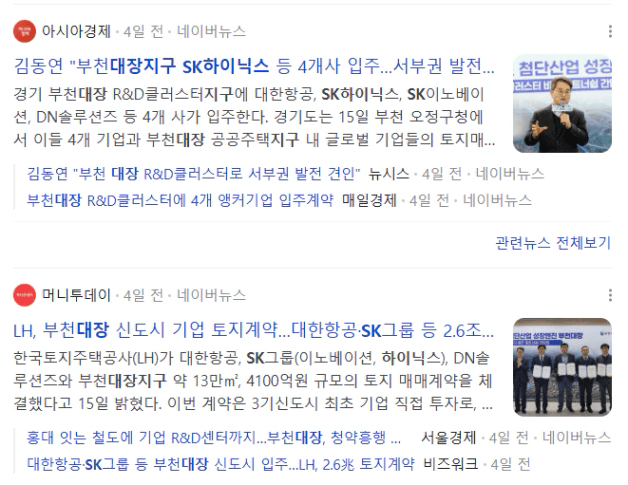 '일자리(SK, 대한항공)'와 ‘강남 접근성(대장-홍대선)’