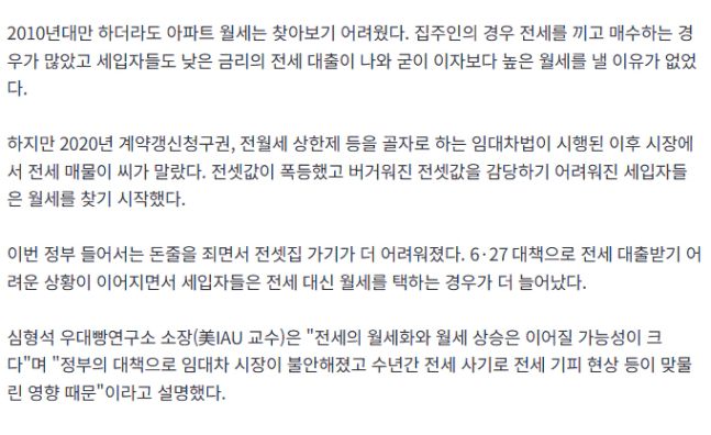 월세의 가속화는 월세를 좋아해서가 아니라 월세가 없기 때문이다.