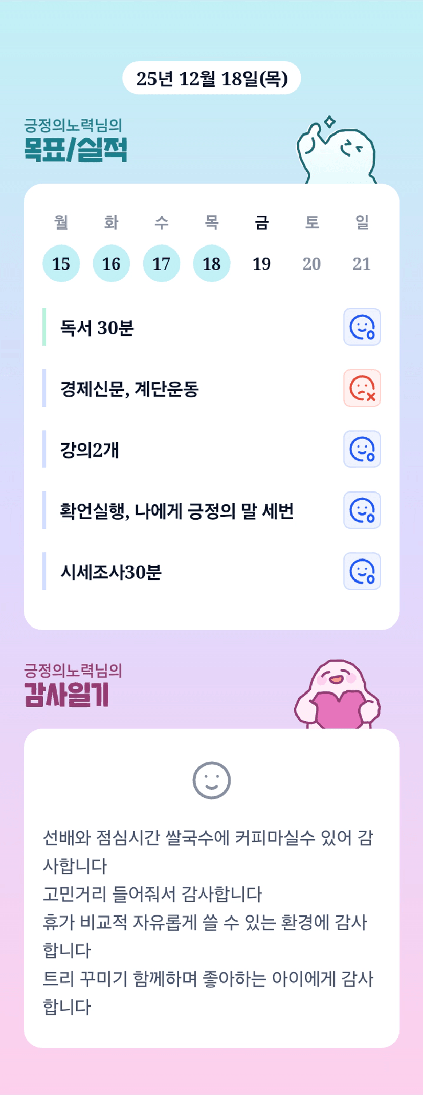 긍정님 연말이라 더 바쁘시죠 ㅠㅠ 남은 기간도 빠이팅이에용!!