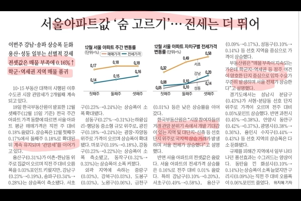 관망세로 물건은 거두도, 호가는 더 올려 거래가 많이 되지 않는 상황. 그 사이 전세는 스멀스멀 올라오는 상황.