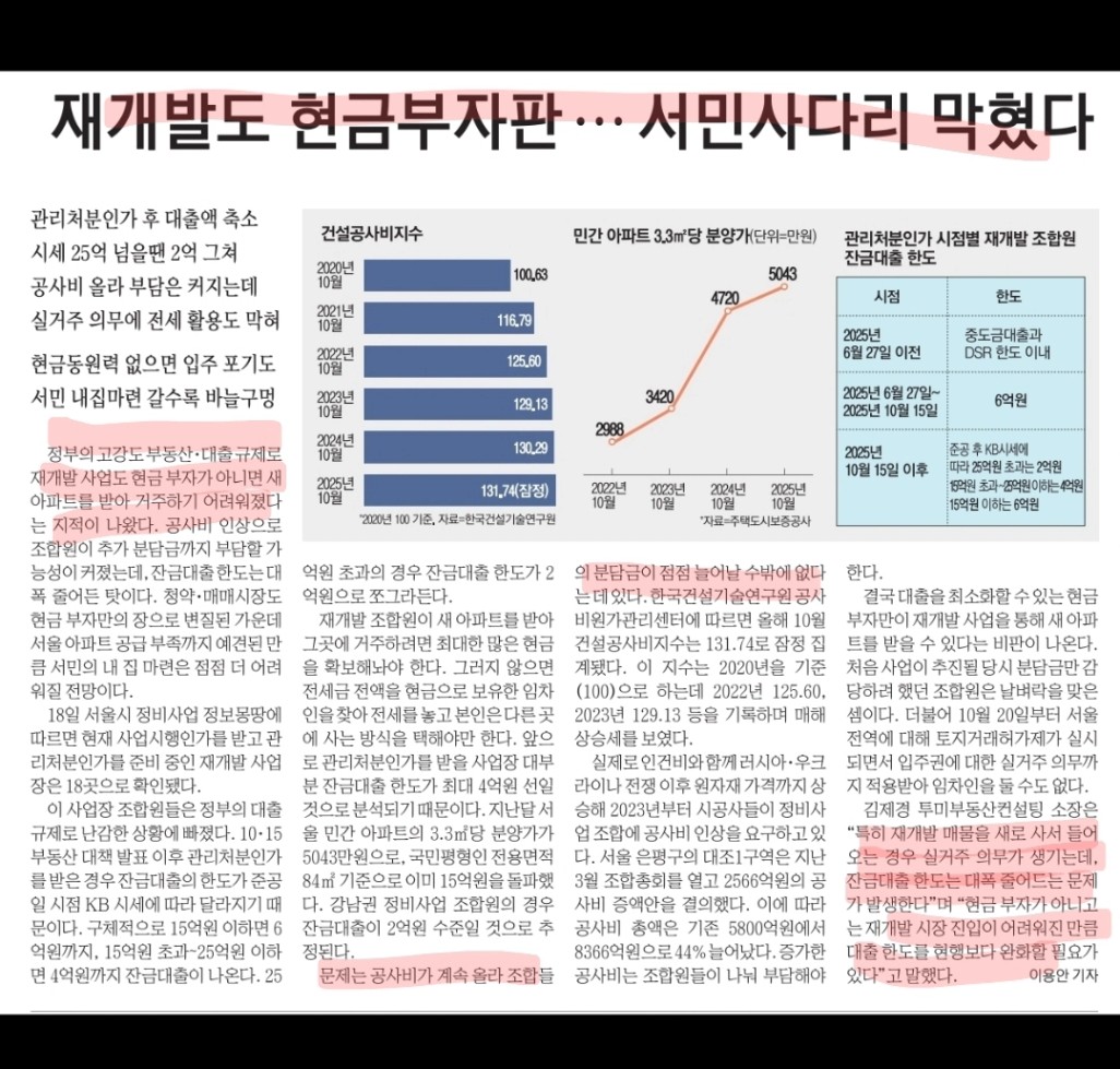 대출규제로 재건축 후 입주가 불가능한 상황이 발생. 현금부자들은 땡큐.