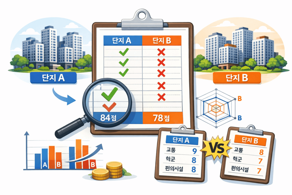 여러 단지를 끊임없이 비교하고 또 비교하면서