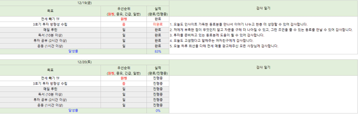 🌻12/20 목표, 12/19 실적 & 감사일기