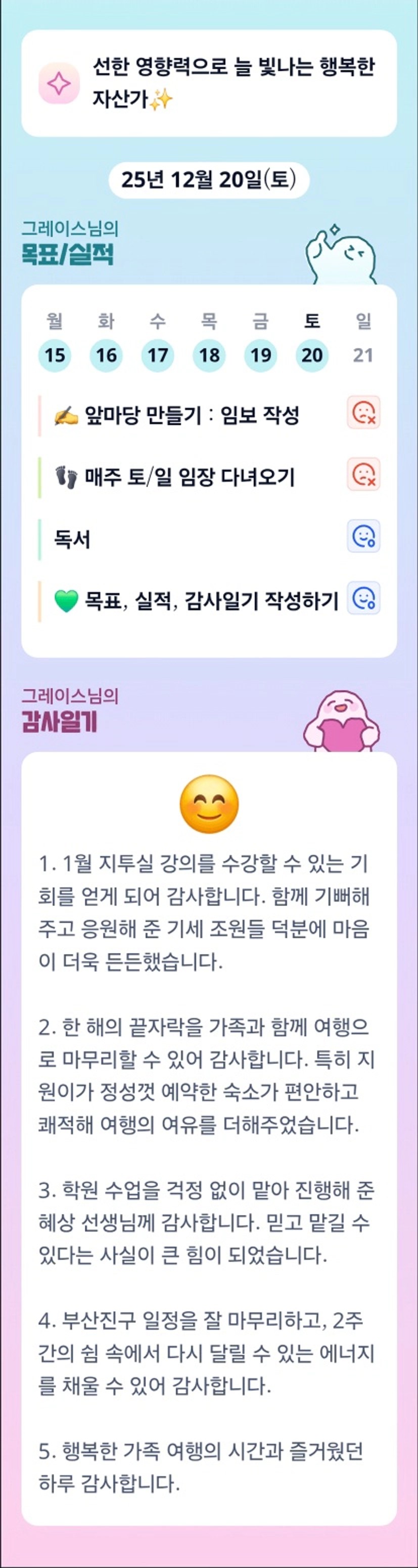그레이스님 부산 임장 일단락 하셨군요. 체력회복 잘 하시고 1월 지투실에서 뵙겠습니다 ^^