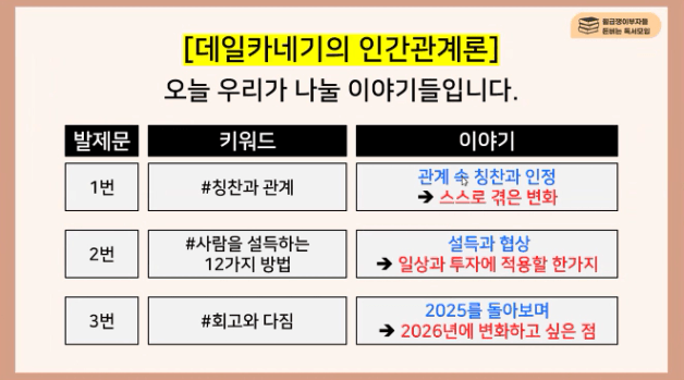 [12월 돈독모 46조 성로이] '데일 카네기 - 인간관계론' 돈독모 후기(삼도(三道) 튜터님)