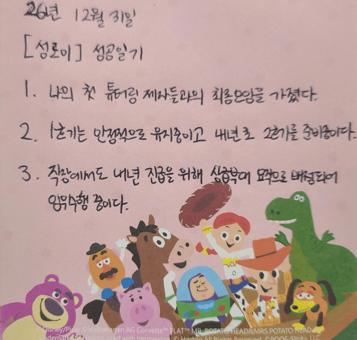 로이님 넘넘 멋진 후기를 통해 저도 도전과 용기를 받아갑니다 26년 1호기, 튜터링, 진급 모두 다 이루신 것 축하드립니다 ^^& 오늘 임장도 화이팅이에요~♡♡