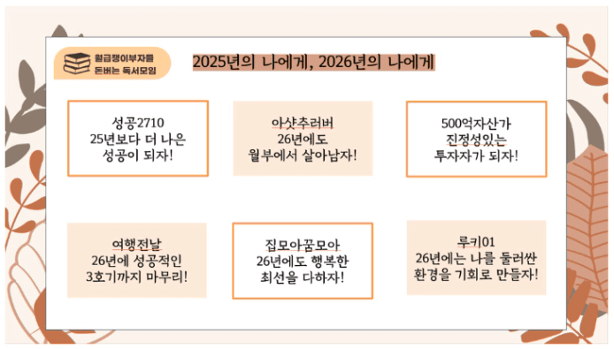 아샷추님 어제 뵈서 너무 좋았습니다. 아샷추님 이야기도 함께 해주셔서 어제 돈독모가 진짜 풍성했던 것 같아요^^ 자리가 불편해서 너무 고생하셨을텐데 끝까지 자리지켜주셔서 감사했습니다😊💛 월부에서 또 뵙길요^^!