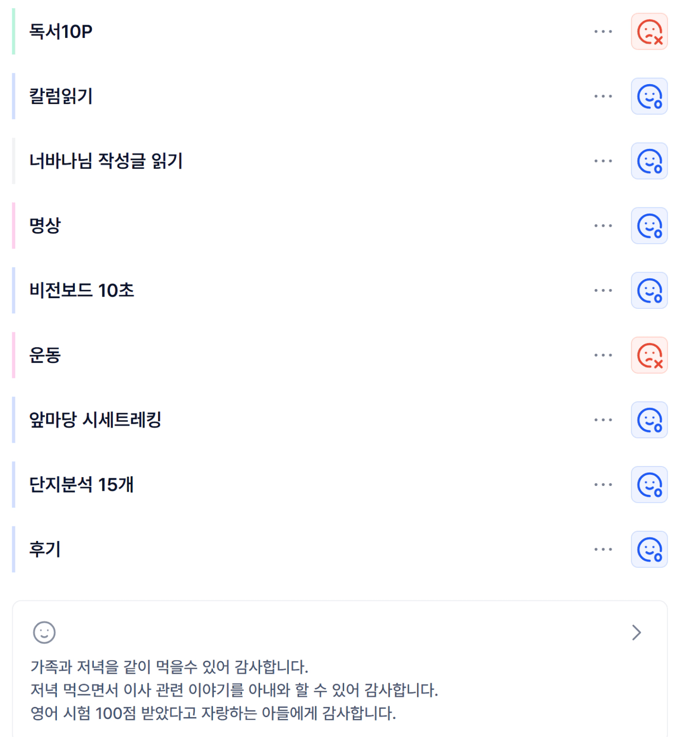 나는 건강한 사람이다.나는 부단히 노력하는 성실한 사람이다.나는 2025년 앞마당 10개를 만든다.나는 2026년 3호기 투자한다.나는 2028년 4호기 투자하고, 순자산 15억 달성한다.나는 2030년 5호기 투자한다.꾸준함은 성공의 최고 덕목이다. 나는 꾸준히해서 2035년 30억 부자가 된다.나 우가행은 해내는 사람이다.나는 한다.나는 해낸다.나는 반드시 된다.