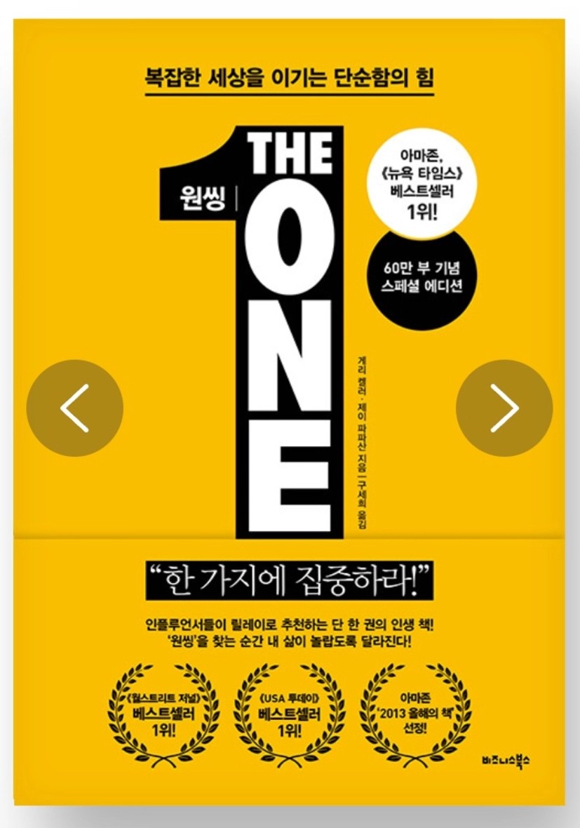 먼저 “원씽”을 선택하고 그 하나를(도미노 조각의 첫번째)찾고 넘어질때 까지 쳐라!!!!이렇게 이해되는데 작가의 의도가 맞는진 모르겠다.ㅎㅎ